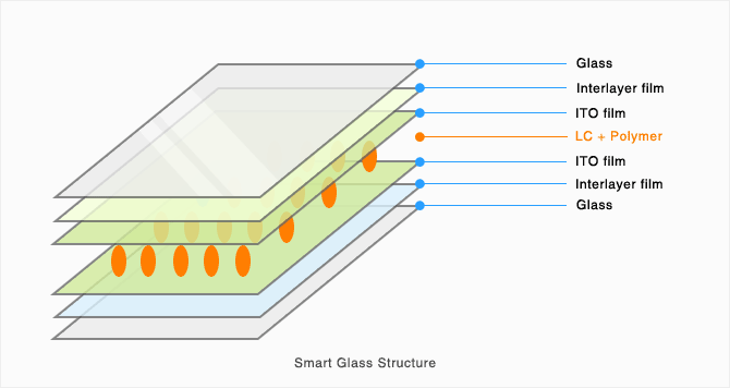 Smart Film스마트필름은 스마트글라스 제작에 사용되는 PDLC(Polymer Dispersed Liquid Crystal)필름입니다. 기본적으로 ON(투명) / OFF(불투명) 전환 가 능하고 또한 빔 프로젝터를 이용한 후면주사방식 스크린으로 활용할 수 있습니다.