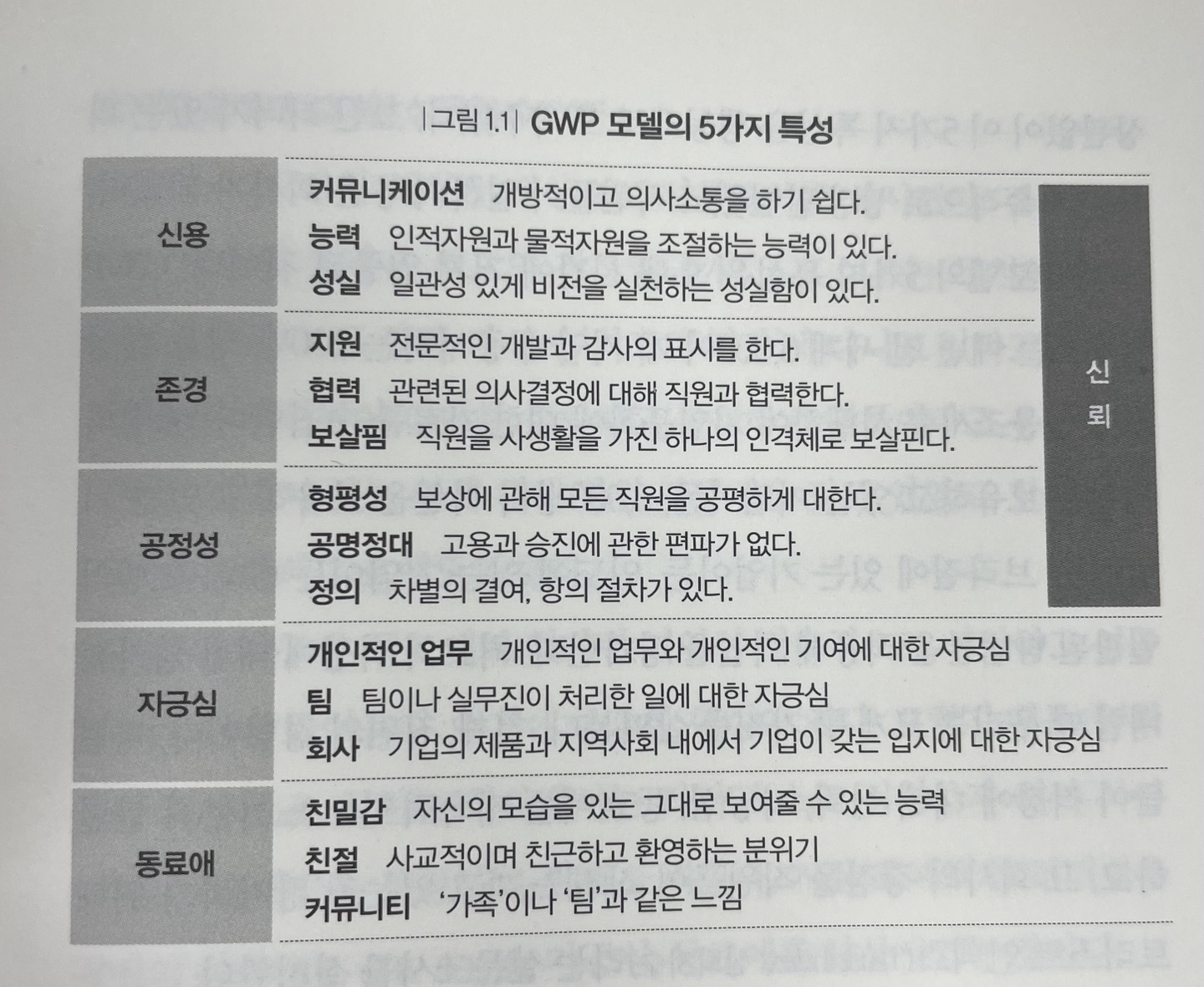 다. 최고의 직장이란 : 직원들이 회사를 신뢰하고, 자신이 하고 있는 일에 자긍심을 느끼며, 함께 일하는 동료를 아끼고 존중하는 곳이어야 한다. 즉, 리더는 매순간 직원들에게 이러한 믿음을 심어줄 수 있어야 한다.