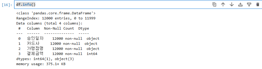 3 결제금액 12000 non-null int64